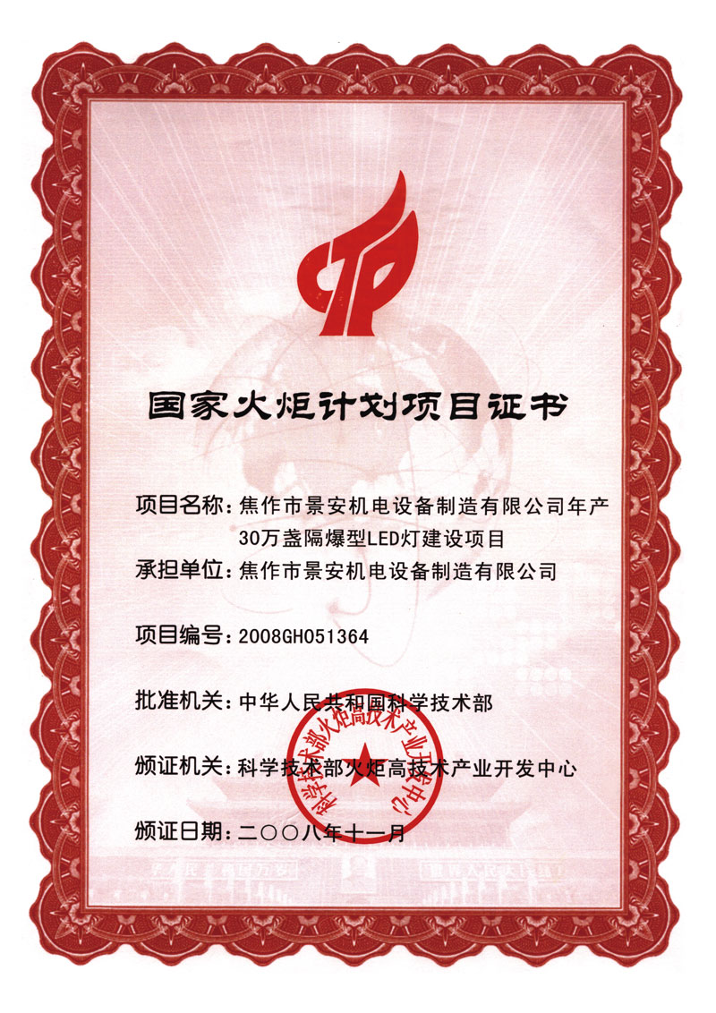 LED火炬計(jì)劃證書