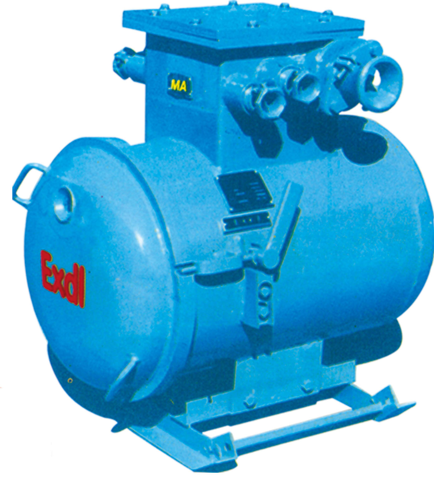 綜合裝置主要由隔爆外殼、干式變壓器、無觸點(diǎn)機(jī)芯三部分組成。隔爆外殼為圓筒型,具有凸出的底和蓋,殼蓋與殼身采用轉(zhuǎn)蓋止口結(jié)構(gòu), 開啟方便。外殼上部有一接線箱作為引進(jìn)和引出的電纜用.外殼右側(cè)裝有操作隔離開關(guān)的手柄和檢查短路、漏電保護(hù)的試驗(yàn)按鈕,并有可靠的機(jī)械聯(lián)鎖裝置,殼蓋上方有觀察窗,可以從外面觀察指示燈狀態(tài)。干式變壓器與機(jī)芯的聯(lián)結(jié)采用端子板,檢修時(shí)機(jī)芯可獨(dú)立拿出。